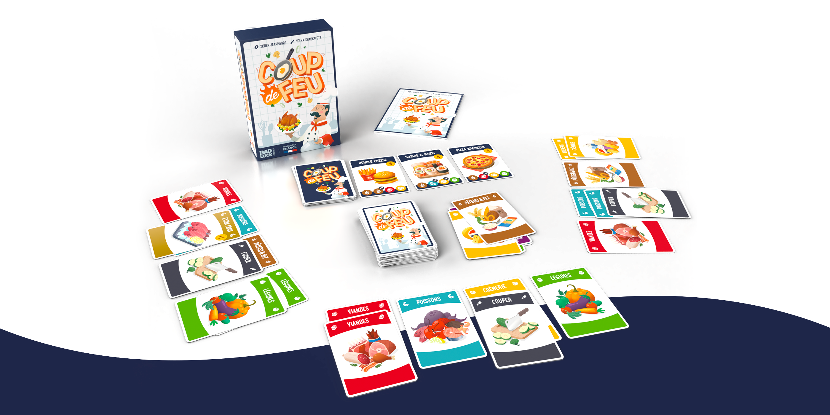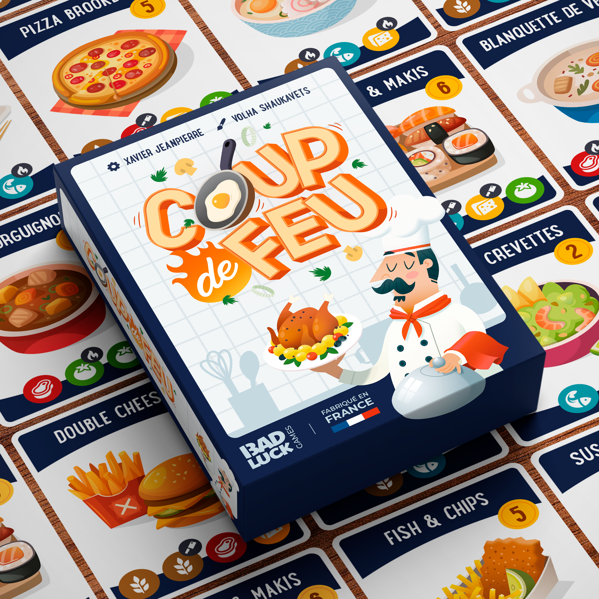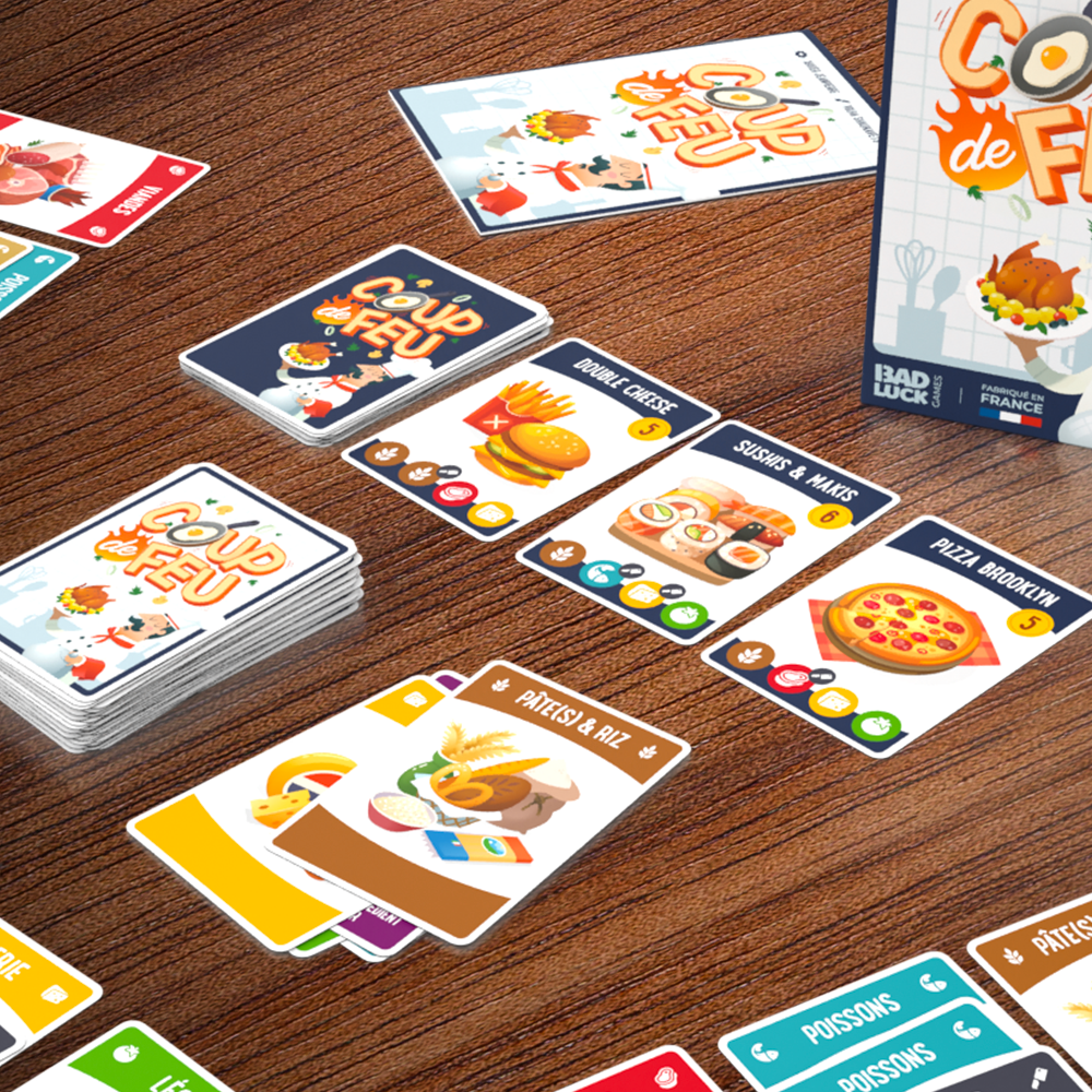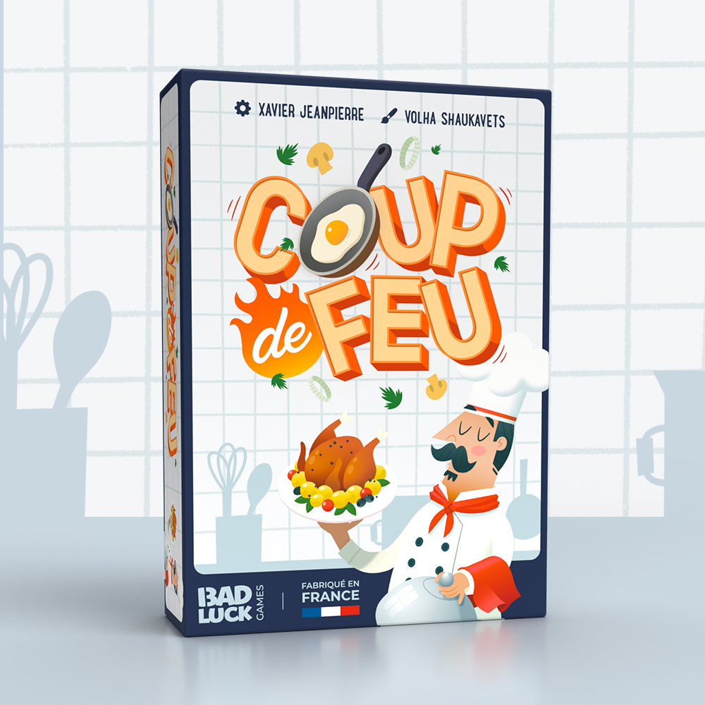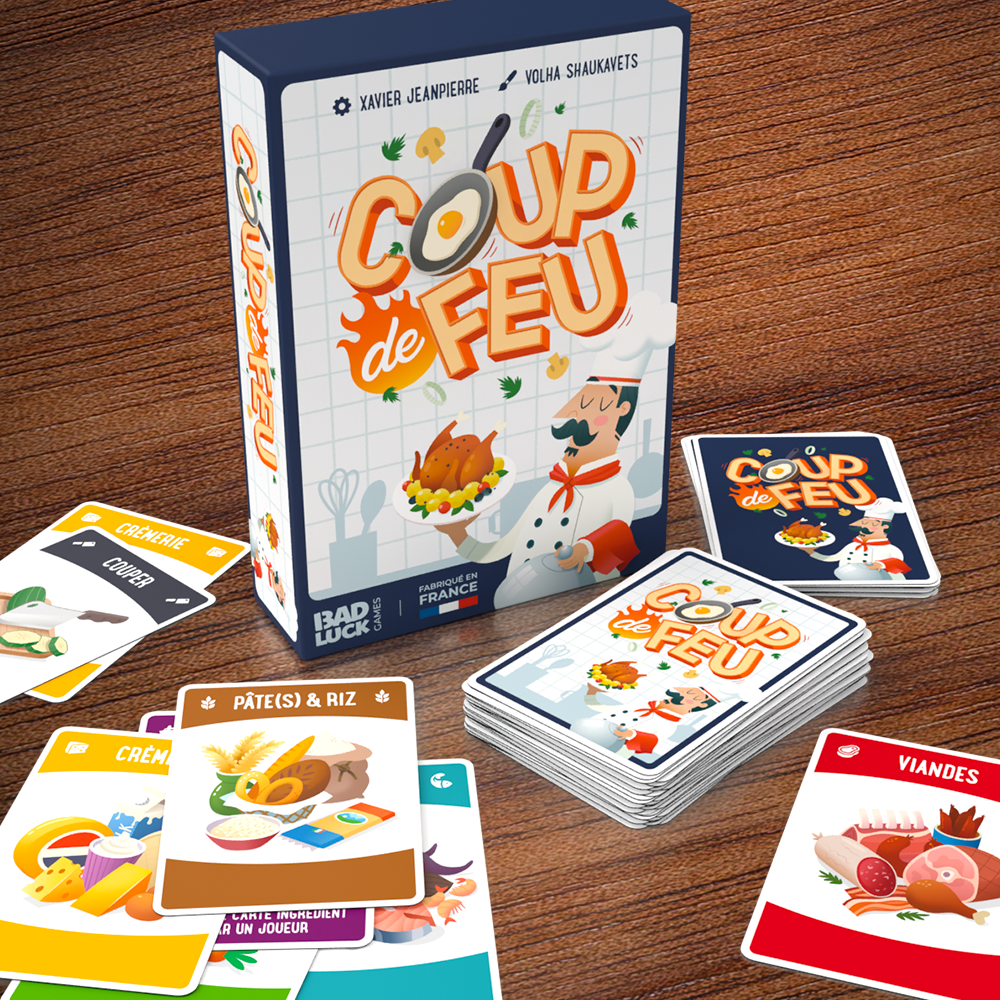 Dans Coup de Feu, c'est l'heure de passer derrière les fourneaux ! Dans ce jeu 100% made in France, tentez de réaliser avant vos adversaires le plus de recettes le plus rapidement possible en rassemblant les ingrédients nécessaires. Coupez, cuisez et cuisinez ! Chaque recette vous rapportera des points.